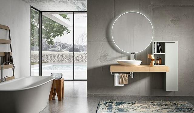 衛(wèi)浴柜現(xiàn)如今的款式設(shè)計以及材質(zhì)都有很多種,如果是懸浮式的設(shè)計,可以簡單到只保留一個橫向的柜子,洗手池位于一端,旁邊的空間可以用來放置毛巾、洗手液等物品,而側(cè)面的儲物空間也可以放置些常用的東西。